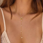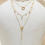 Lariat, a loop-and-drop necklace that elongates and catches the light.